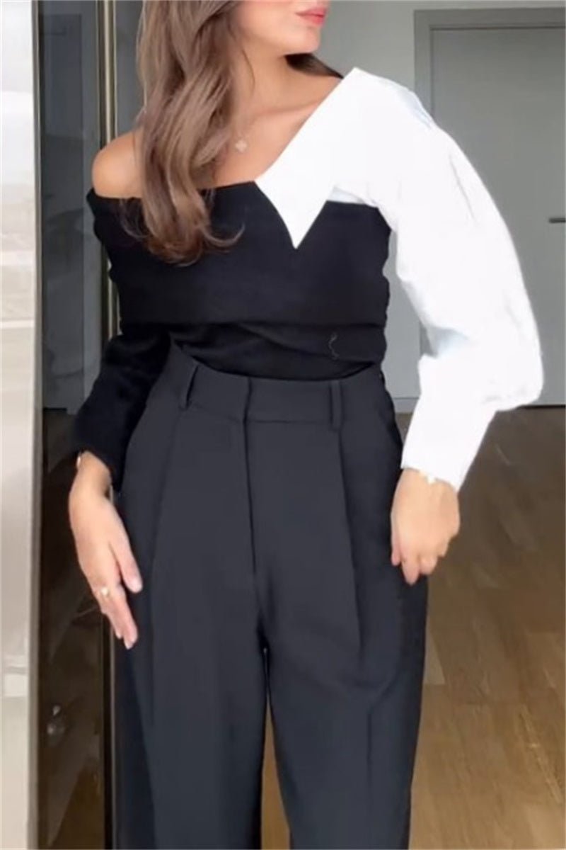 Be the first to review “Casual Patchwork Contrast V Neck Sweaters”
