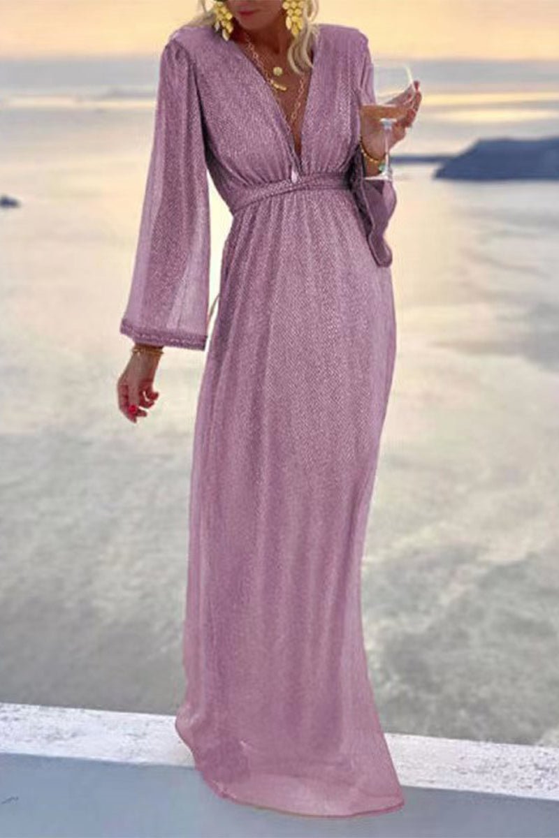 Fashion Elegant Solid Patchwork Fold V Neck Evening Dress Dresses(4 Colors)