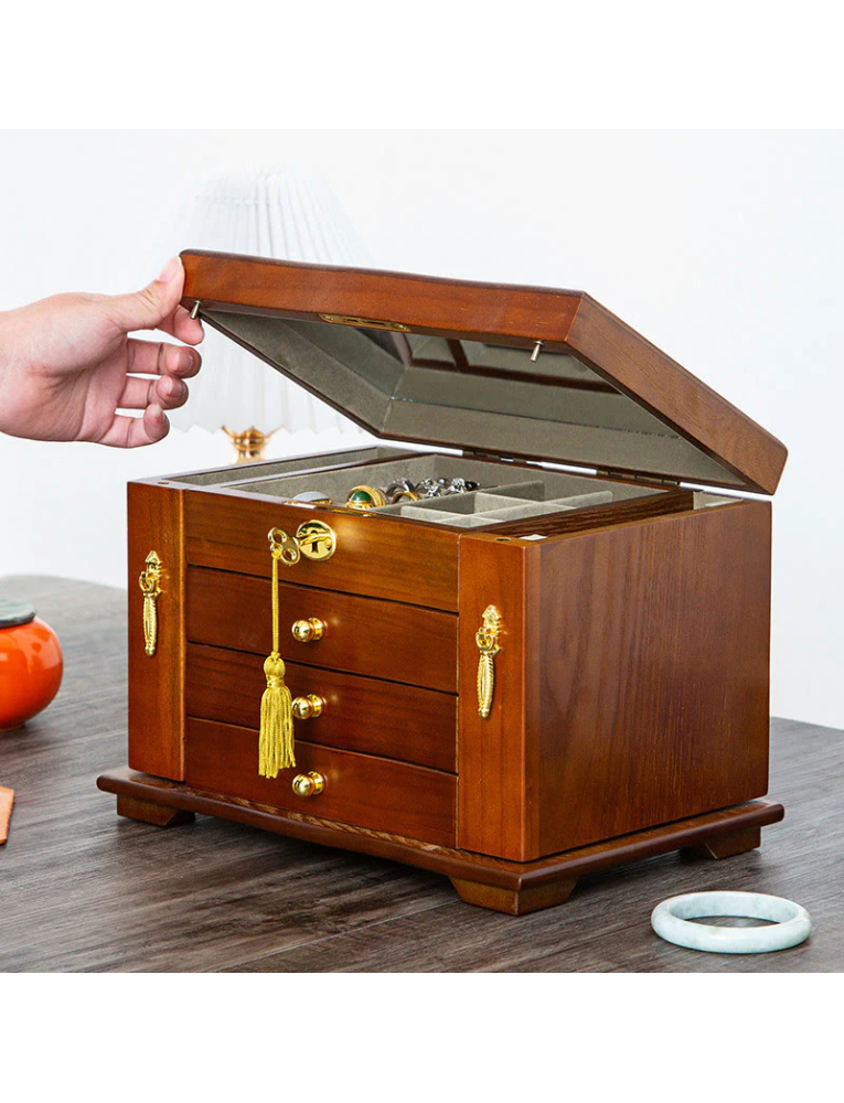 Vintage Large Capacity Wooden Jewelry Box Jewelry Storage Box With Mirror